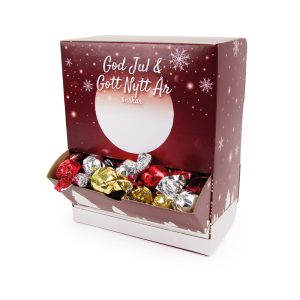 På flere af vores julegaver kan du få dit logo trykt, såsom sjove chokoladekalendere og chokoladeæsker med spændende og varieret indhold. Eller hvorfor ikke en solid peberkageboks med tryk, der indeholder lækre svenske peberkager fra Nyåkers?
